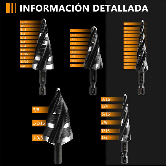 Juego de 5 brocas escalonadas HSS para metal (envío gratis)
