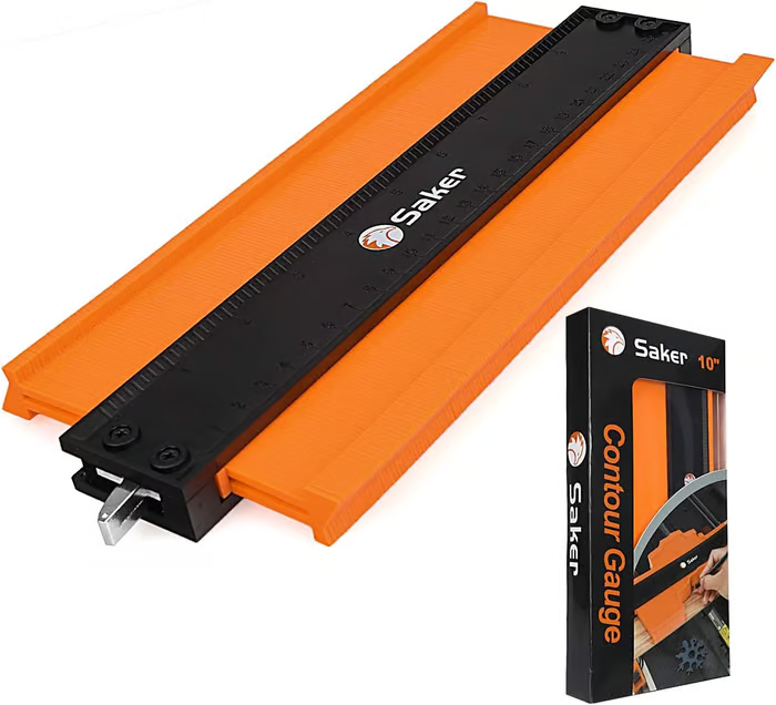 Esta herramienta es fácil de usar y se mantiene en su lugar. Una vez que se ha contorneado el objeto, sujete los dientes del calibre de contorno en su lugar para obtener pistas perfectas e inmóviles . Se adapta a la mayoría de los tubos y columnas redondas , y facilita la copia de formas en baldosas, laminados, madera maciza y vinilo para realizar cortes precisos en el piso de los objetos .