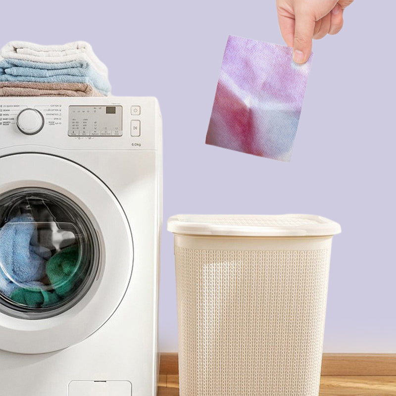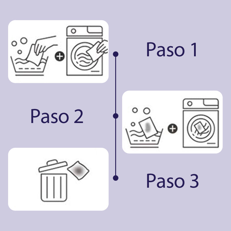 FÁCIL DE USAR: Simplemente coloque 1-2 hojas en la lavadora con su ropa y detergente de colores mixtos, luego comience a lavar. Deseche la hoja después de usarla y vea cómo captura el exceso de tinte.
