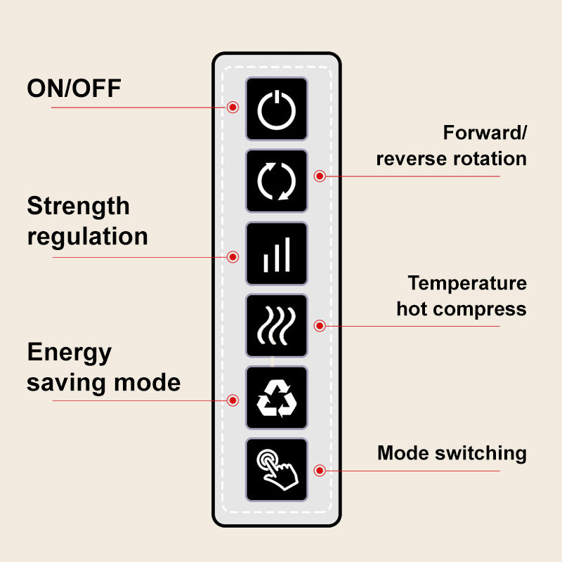 FUNCIÓN DE CALOR : La función de calor adicional ayuda a mejorar la circulación sanguínea y proporciona una calidez relajante para mejorar su experiencia de masaje.