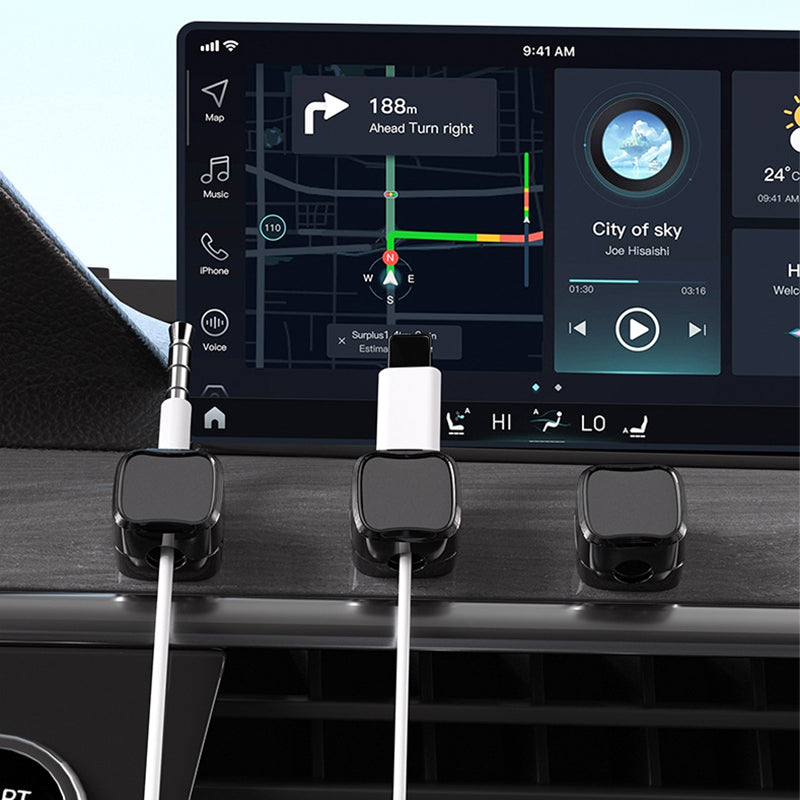 INSTALACIÓN ADHESIVA : Disfrute de una instalación sencilla gracias a su resistente adhesivo. Fije los soportes a cualquier superficie y mantenga sus cables de carga, auriculares u otros cables a mano.