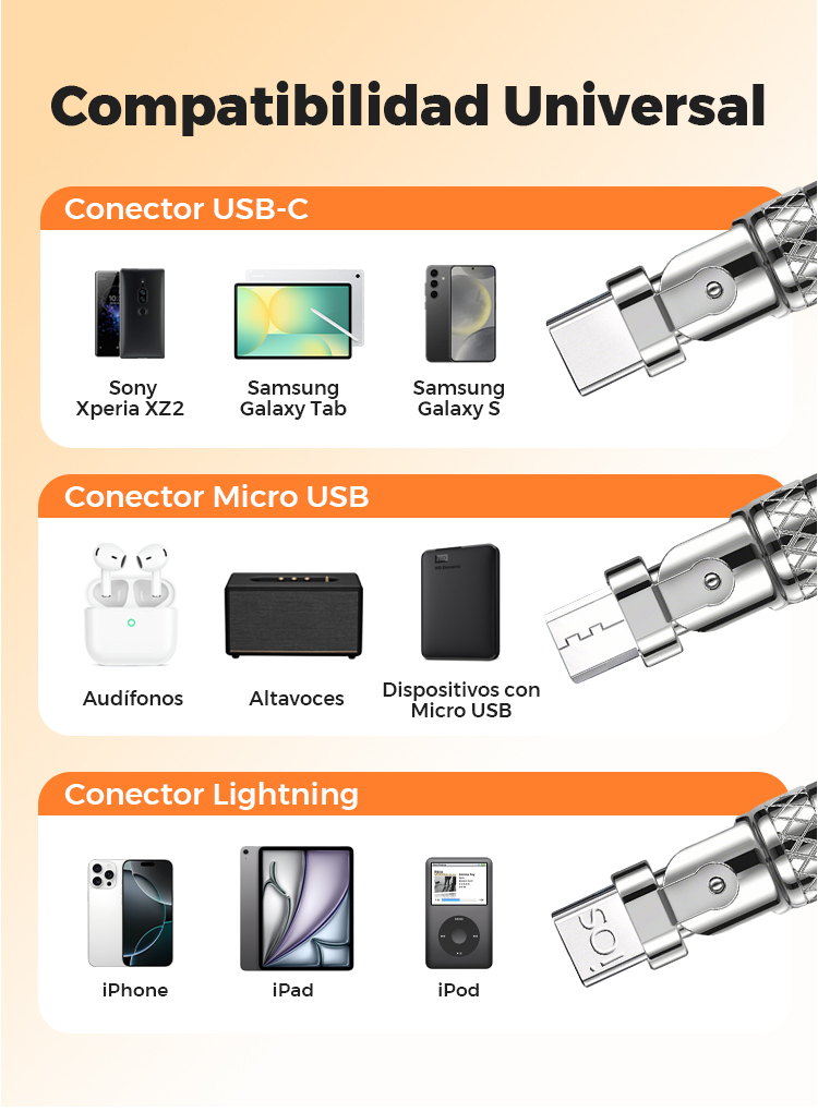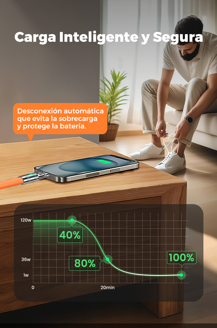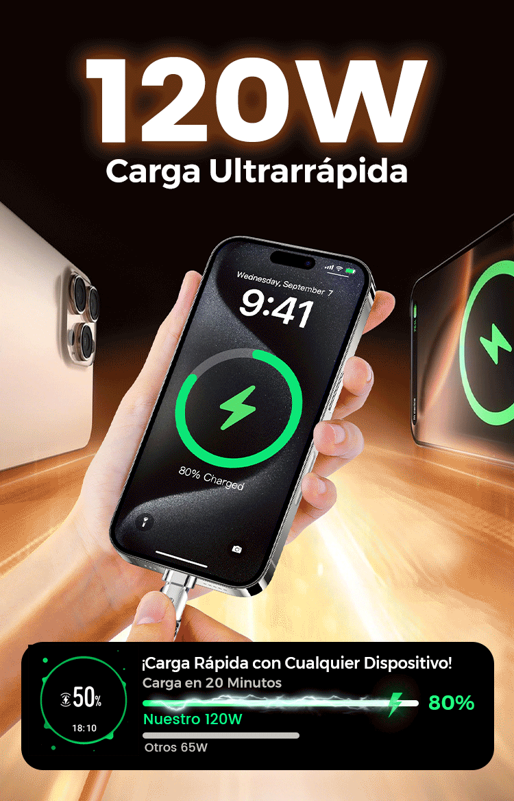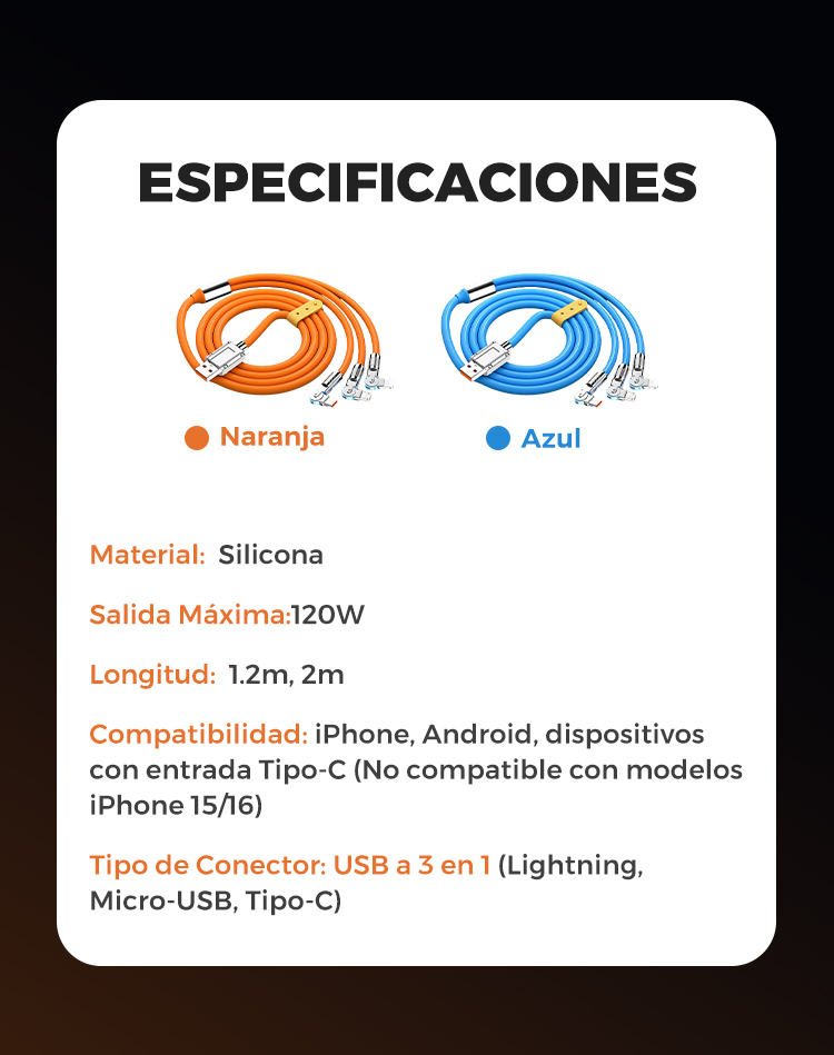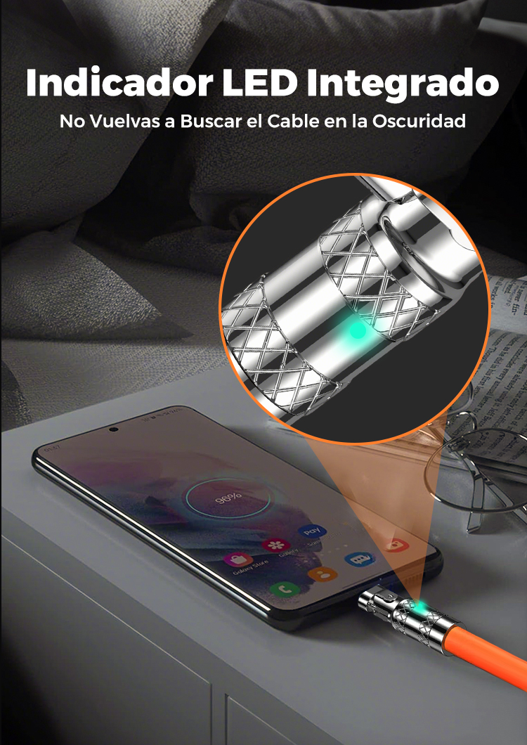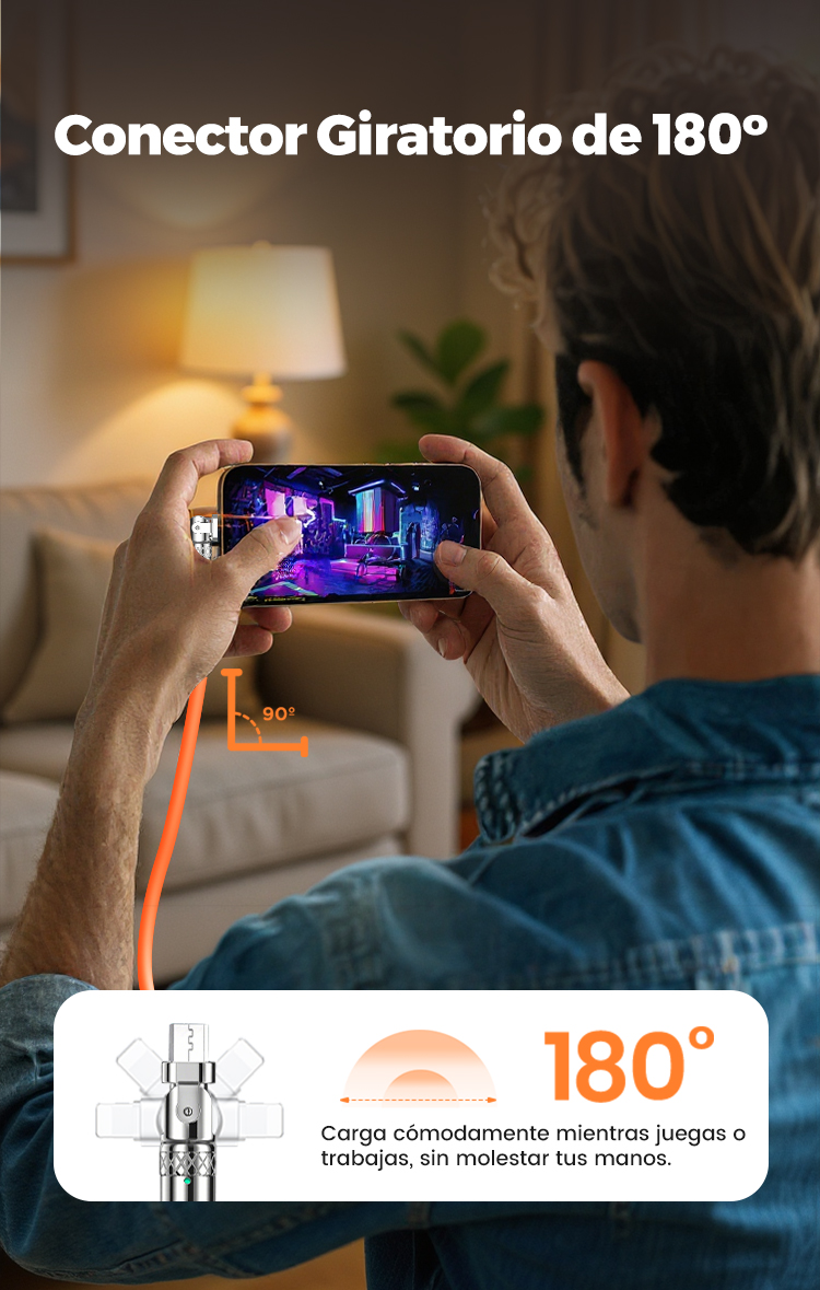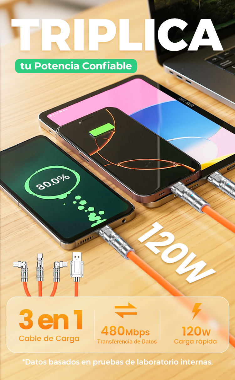 Cable de Carga Rápida 3 en 1 de 120 W con Giro de 180°