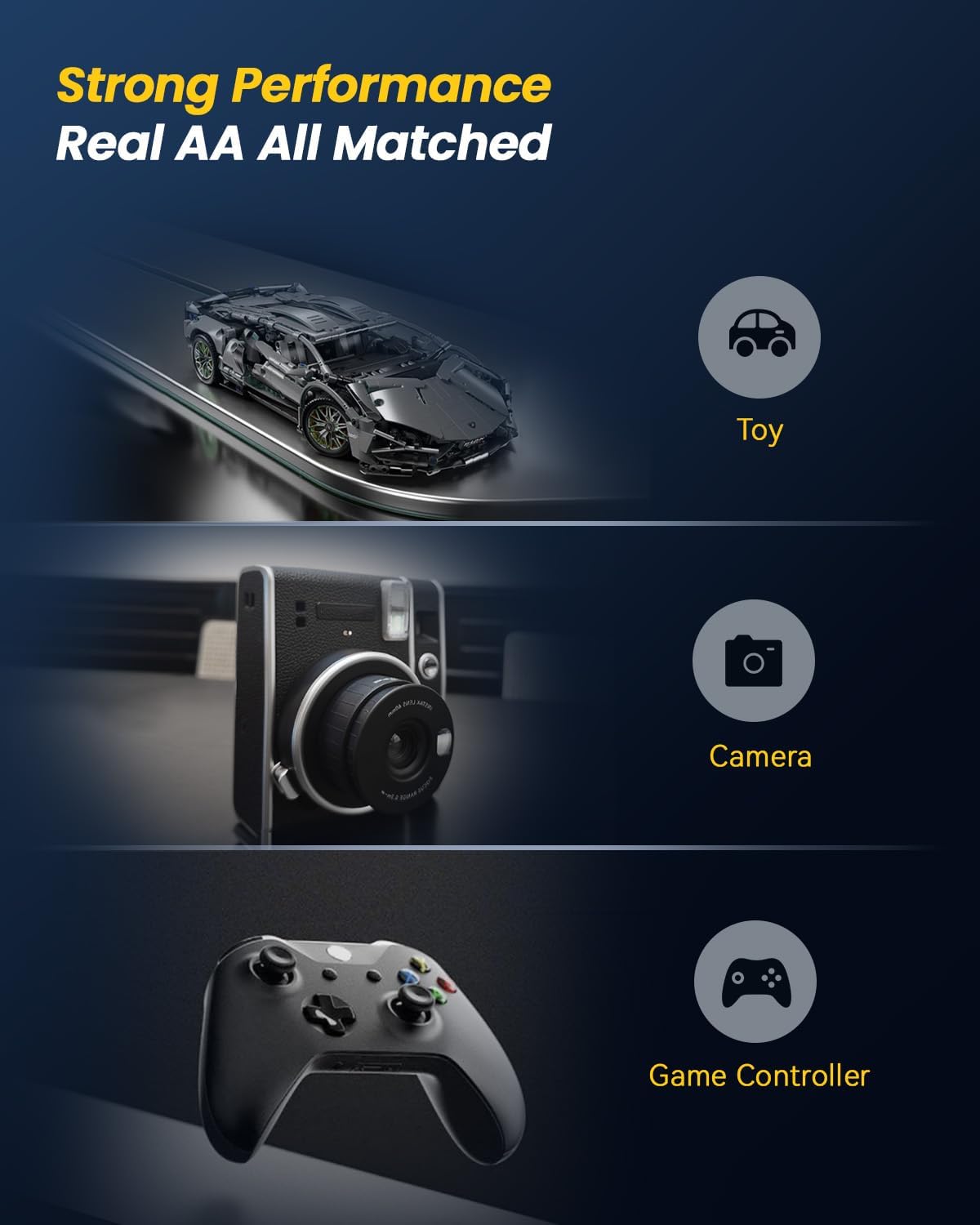 【Pantalla Inteligente LED】La luz LED muestra el estado de carga. Verde parpadeante indica que está cargando, verde estático indica que está completamente cargado, rojo indica una batería defectuosa o un estado de temperatura. Todas las baterías AA/AAA pueden cargarse en 2,5 horas hasta el estado de carga completa con luz verde estática.